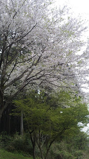 まわりはもう新緑のまっただ中に、ほわっほわっと薄桃色の花が山を彩っています。